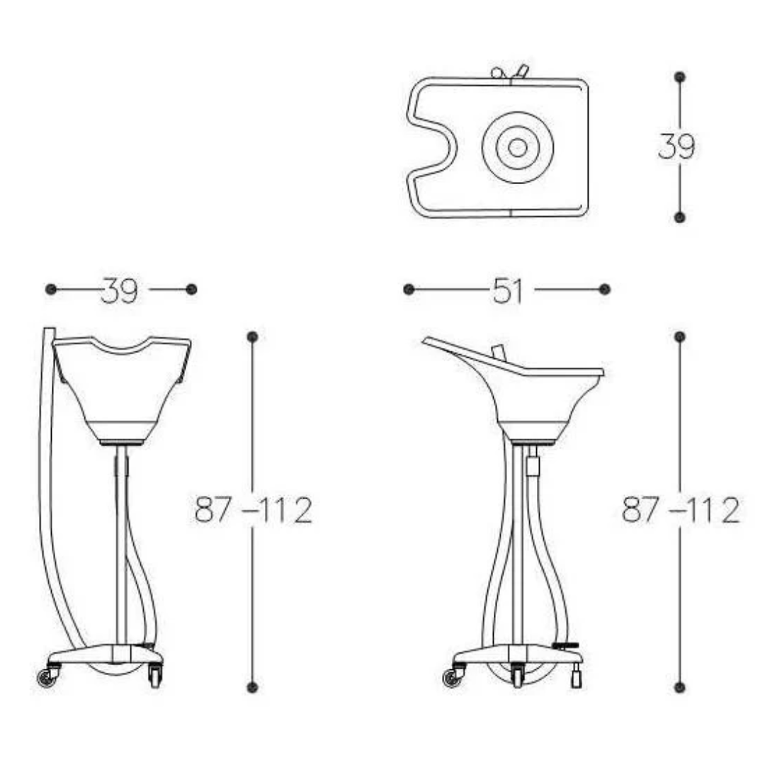 Sehr solides mobiles Spülbecken der niederländischen Firma Alteq. Tiefes Kunststoffbecken, nicht kippbar, der schwere Gusseisensockel verleiht diesem Spülbecken einen hohen Stand. Höhenverstellbar über ein Fußpedal. Mobil auf zwei Rädern.