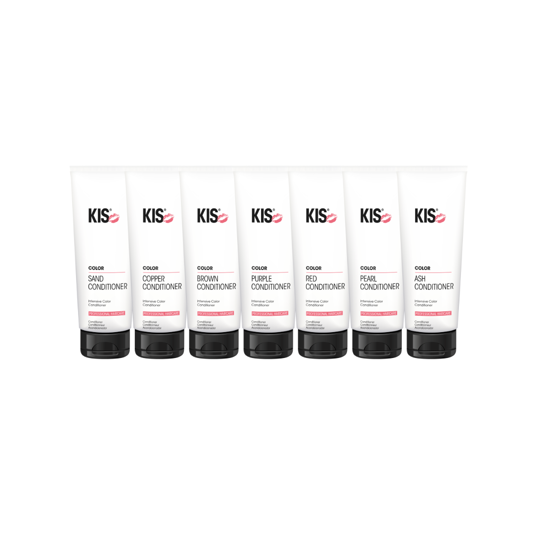 KIS Color Conditioner sind in sieben atemberaubenden Farbtönen erhältlich: Asch , Braun , Kupfer , Perlmutt , Lila , Rot und Sand . Alle Farbtöne sind untereinander mischbar und sowohl für coloriertes als auch für natürliches Haar geeignet. Ideal für kreatives Färben im Friseursalon , aber auch perfekt für die Anwendung zu Hause zwischen den Friseurbesuchen – sie sorgen dafür, dass frisch coloriertes Haar in Topform bleibt und eine strahlende, funkelnde Farbe erhält .
