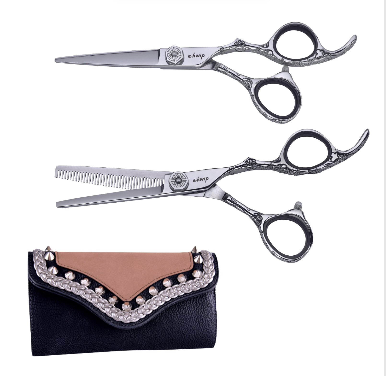 Mit dem E-Kwip Flowerset Silver haben Sie ein wirklich einzigartiges Scherenset zu Hause! Die Ösen sind mit einem Reliefblumenmotiv versehen. Die verstellbare Schraube ist mit Swarovski-Kristallen verziert. Sowohl Schere als auch Effilierschere sind nur in Größe 5,5 erhältlich. Das Set wird in einer schönen schwarzen Box geliefert. Die Schere besteht aus hochwertigem japanischem Stahl und ist unglaublich scharf. Hergestellt für jahrelangen professionellen Einsatz.