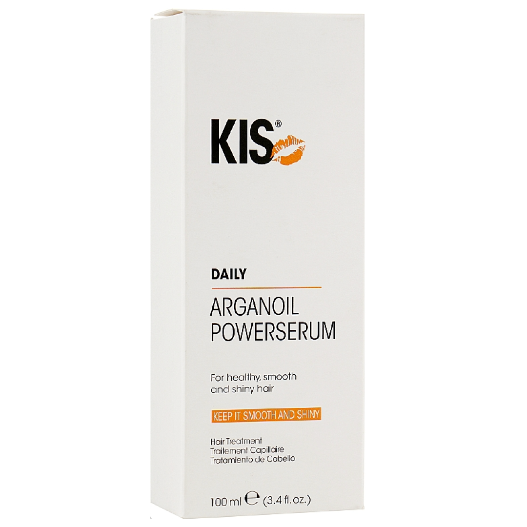 Der hohe Arganöl-Anteil im KIS PowerSerum ist reich an essentiellen Fettsäuren und Antioxidantien, darunter Vitamin E. Das Ergebnis ist geschmeidiges, weiches und glänzendes Haar. Dank der hohen Arganöl-Konzentration kann das KIS PowerSerum auch in Kombination mit einem Haarglätter verwendet werden. Die meisten Produkte auf Arganölbasis enthalten hauptsächlich flüchtige Öle wie Cyclomethicon, die bei Temperaturen über 120 Grad Celsius verdunsten und das Haar statisch machen. Testen Sie den Haarglätter selbst und überzeugen Sie sich von der Qualität des KIS Bio-Arganöl-PowerSerums.
