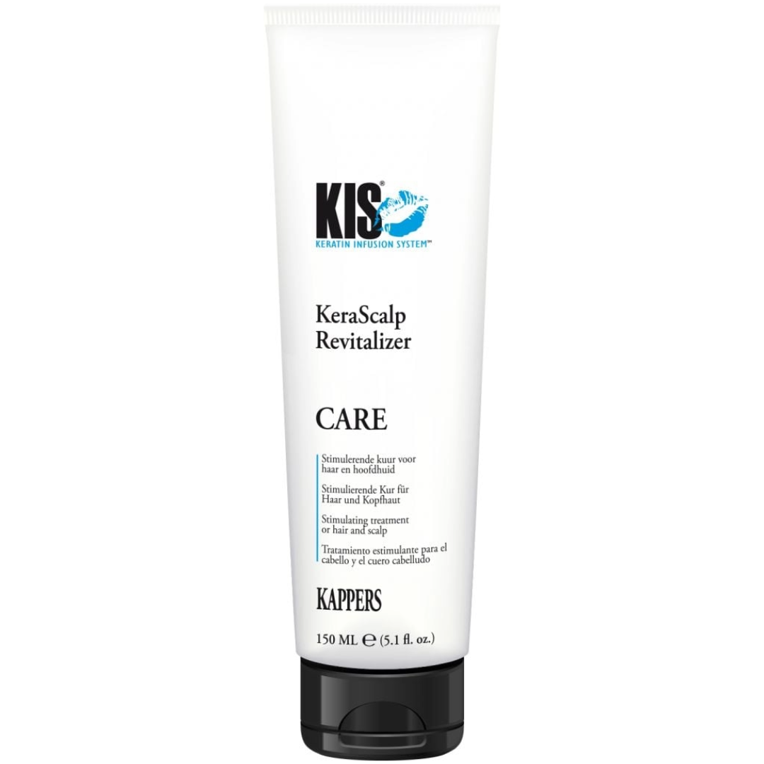 Eine trockene oder empfindliche Kopfhaut verursacht oft ein unangenehmes und gereiztes Gefühl. KIS KeraScalp Revitalizer ist ein Haarpflegeprodukt, das beruhigend auf Haar und Kopfhaut wirkt. Die Kopfhaut wird stimuliert und Haut und Haar werden mit Feuchtigkeit versorgt und gestärkt. Verpackung Der KIS KeraScalp Revitalizer ist in einer Verbraucherverpackung als 150-Milliliter-Tube und einer großen Verpackung für die Salonanwendung mit 1000 Milliliter erhältlich. Anwendung Geben Sie eine eurogroße Menge KIS Kerascalp Revitalizer auf Ihre Handflächen und verteilen Sie diese anschließend im handtuchtrockenen Haar. Massieren Sie den Revitalizer in die Kopfhaut ein und lassen Sie ihn weitere 3 bis 5 Minuten einwirken. Anschließend kann er gründlich ausgespült werden.