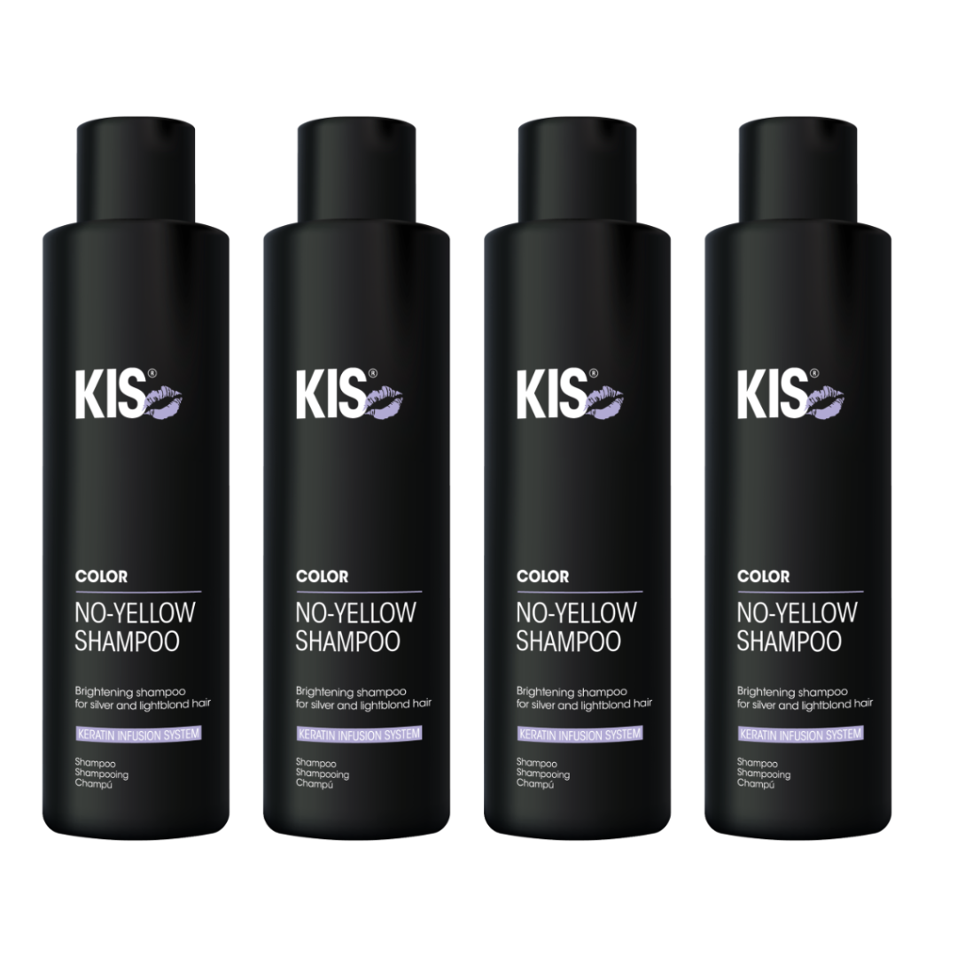 Für einen schönen, kühlen Ton muss auch die Basis kühl sein – das weiß jeder Friseur. Bisher war eine Tönung nach dem Blondieren oder Aufhellen die Lösung: Sie neutralisierte die letzten Gelbspuren. Diesen Schritt können Sie sich nun sparen, denn mit dem neuen No-Yellow Shampoo von KIS schaffen Sie eine perfekt kühle Basis für die kühlste Farbe. Was ist das? Das KIS No-Yellow Shampoo ist ein intensives Violett-Shampoo, das die letzten Gelbspuren nach dem Blondieren oder Aufhellen neutralisiert.