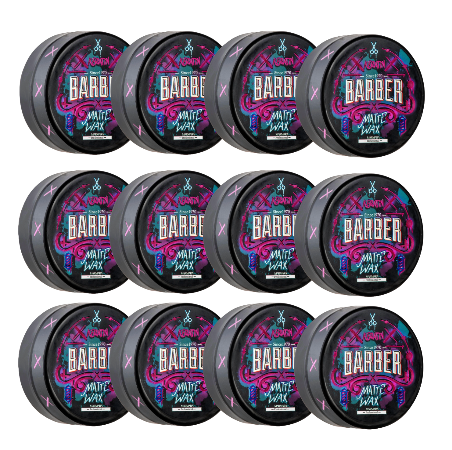 Die bekannte Friseurmarke BARBER aus MARMARA hat jetzt 7 neue Wachse in ihr Sortiment aufgenommen. Es gibt 4 auf Wasserbasis und 3 auf Ölbasis. Das Barber Keratin Matte Wax wird auf Ölbasis mit Keratin hergestellt und kann mit Shampoo aus dem Haar ausgewaschen werden. Es hat einen wunderbar süßen, exotischen Duft. Es ist in einem Plastikgefäß verpackt und wird versiegelt geliefert. Bestückt mit Friseurschere und Friseurstange ist das Glas ein echter Hingucker! Jedes Glas der Barber-Wachslinie hat eine erkennbare Farbe und einige leuchten sogar im Dunkeln. Wenn also der Friseursalon oder Ihr Friseurladen nicht beleuchtet ist, beispielsweise nachts, leuchten diese Töpfe auf. Dies weckt die Aufmerksamkeit potenzieller Kunden, die an Ihrem Schaufenster vorbeigehen. Stellen Sie also sicher, dass Sie die gesamte Linie erhalten. Die Wachse haben, wie auch die übrigen Produkte der Marke BARBER, ein hervorragendes Preis-Leistungs-Verhältnis.