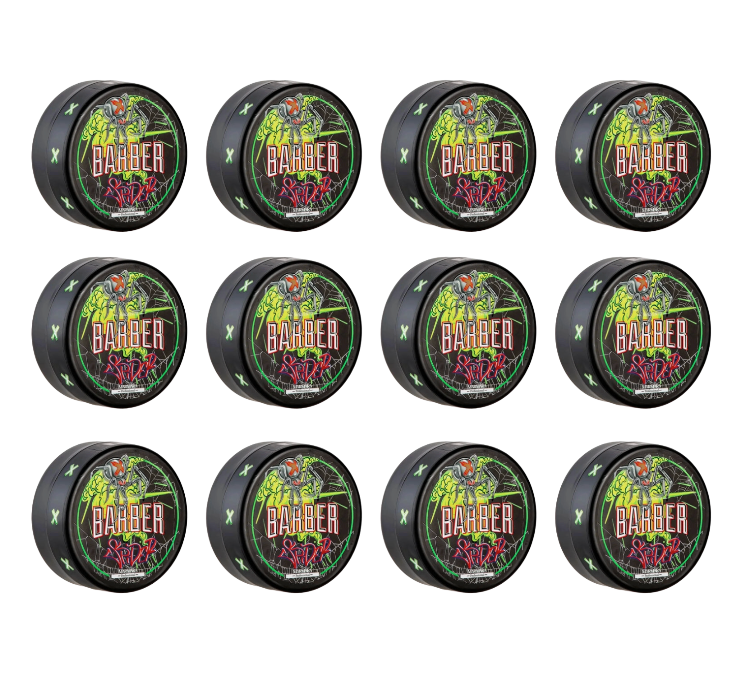 Die bekannte Friseurmarke BARBER aus MARMARA hat jetzt 7 neue Wachse in ihr Sortiment aufgenommen. Es gibt 4 auf Wasserbasis und 3 auf Ölbasis. Das Barber Spider Wax ist auf Ölbasis hergestellt und kann mit Shampoo aus dem Haar ausgewaschen werden. Es hat einen wunderbar frischen Duft. Es ist in einem Plastikgefäß mit Spinne und Netz verpackt und wird versiegelt geliefert. Das Glas ist ein echter Hingucker! Jedes Glas der Barber-Wachslinie hat eine erkennbare Farbe und einige leuchten sogar im Dunkeln. Wenn also der Friseursalon oder Ihr Friseurladen nicht beleuchtet ist, beispielsweise nachts, leuchten diese Töpfe auf. Dies weckt die Aufmerksamkeit potenzieller Kunden, die an Ihrem Schaufenster vorbeigehen. Stellen Sie also sicher, dass Sie die gesamte Linie erhalten. Die Wachse haben, wie auch die übrigen Produkte der Marke BARBER, ein hervorragendes Preis-Leistungs-Verhältnis.
