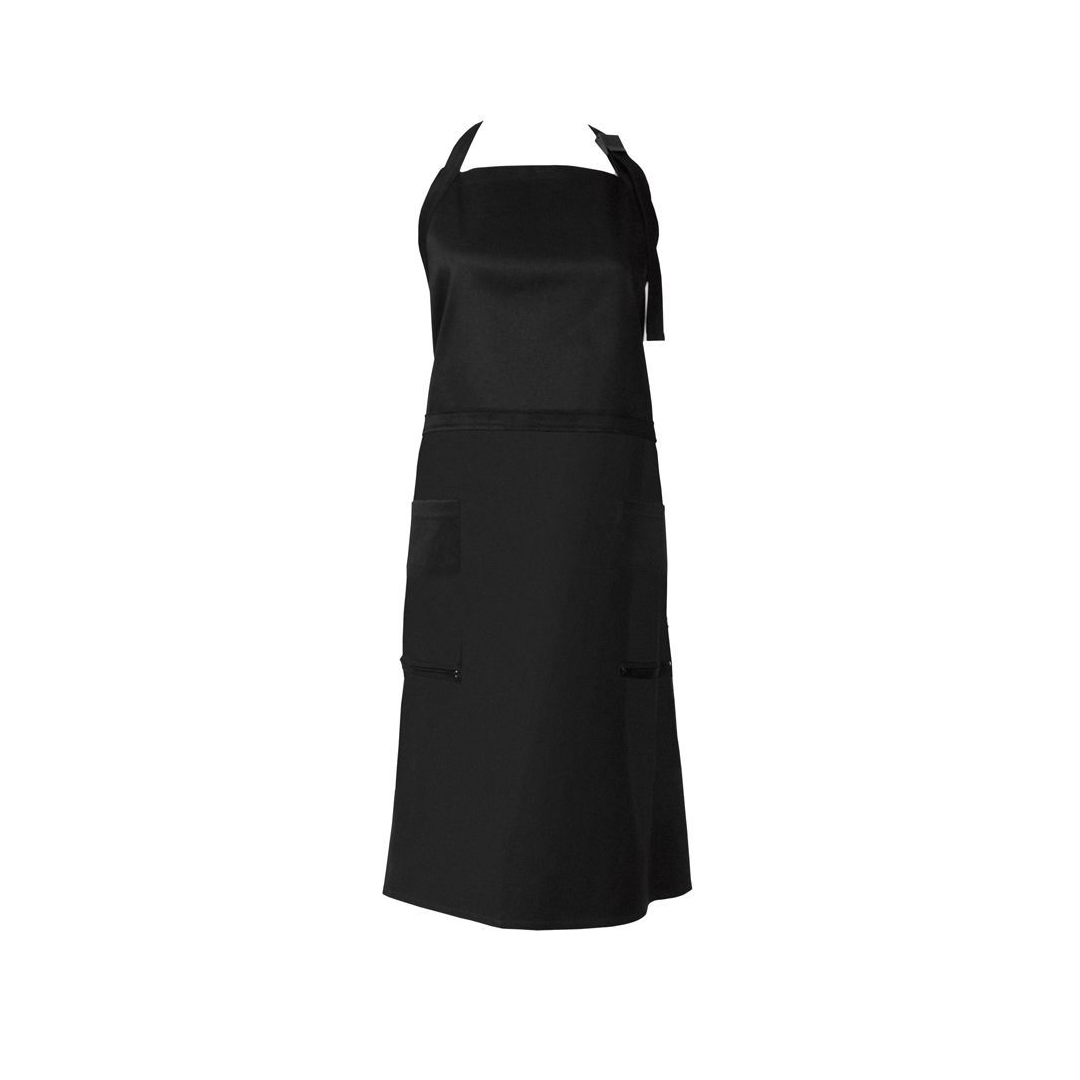 Diese in elegantem Schwarz gehaltene Schürze verfügt über praktische Taschen mit Reißverschlüssen am unteren Ende, die ein leichtes Entfernen von Haaren ermöglichen. Die verstellbaren Nacken- und Taillenbänder machen sie für alle Körpertypen geeignet.