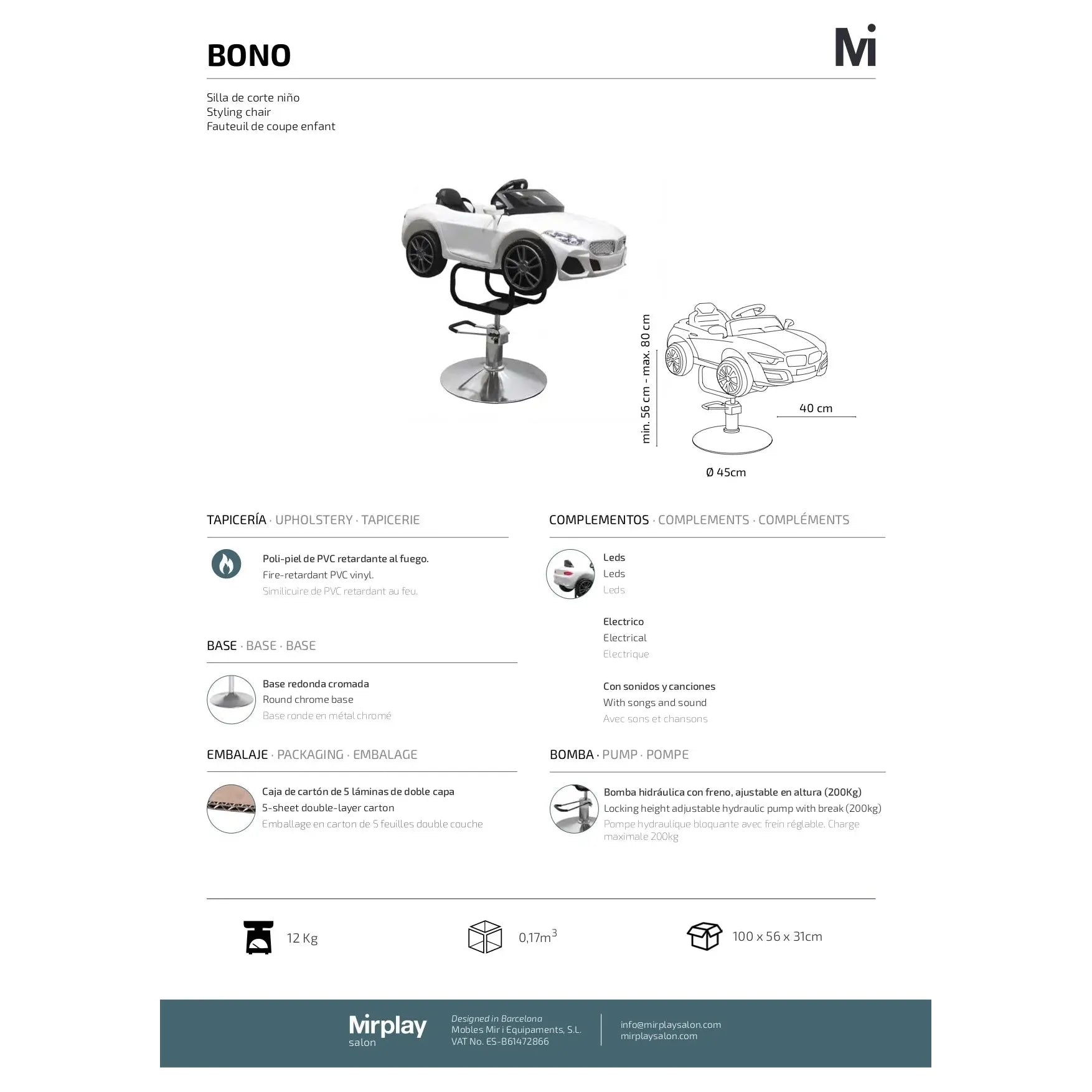 Mirplay Friseurstuhl KIDS Bono Weiß
