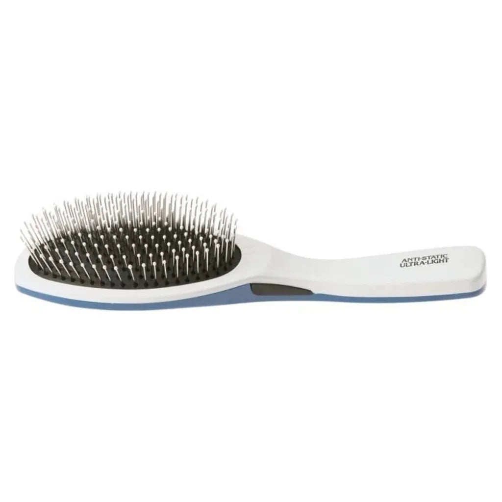 Der Bürstenaufsatz hat eine ovale Form mit pneumatischem Kissen und Eisenstiften mit Schutzkappen. Durch das pneumatische Kissen und die Kugeln an den Stiften bietet die Bürste einen besseren Schutz der Kopfhaut.