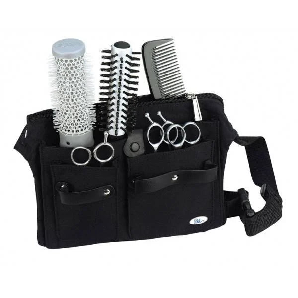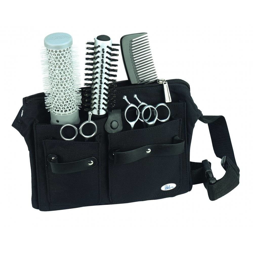 Die praktische Scherentasche von Sibel verfügt über ein großes Fach mit Reißverschluss und zwei Vordertaschen mit Scherentaschen zur sicheren Aufbewahrung Ihrer Scheren. An der Vorderseite der Fächer befinden sich außerdem Riemen aus Kunstleder, an denen Sie Ihre Bürste bei Bedarf aufhängen können. Kurz gesagt: Dieses Friseurholster bietet Platz für mehrere Friseurscheren, Kämme, Bürsten und andere Friseurutensilien. Mit dem Practical haben Sie alles griffbereit. Und Sie müssen nie weit laufen, um Ihre Materialien zu holen. Die Friseurtasche verfügt über einen verstellbaren Riemen, der für mehrere Personen angepasst werden kann. Dank des Kunststoffverschlusses lässt sich die Tasche außerdem leicht abnehmen und wieder anbringen. Die Tasche ist leicht und besteht aus starkem, abnehmbarem Stoff.