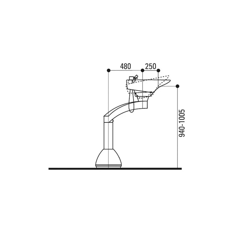 Het basisapparaat bestaat uit stabiel gegoten aluminium, geverfd met polyurethaanlak. Het scharnier van het wassysteem is 360° draaibaar zonder stop en is uitgerust met onderhoudsarme technologie. De bijbehorende porseleinen wasbak in wit of zwart is ook draaibaar en 360° kantelbaar, inclusief een éénhendelmengkraan AquaPLUS met keramische afdichting.