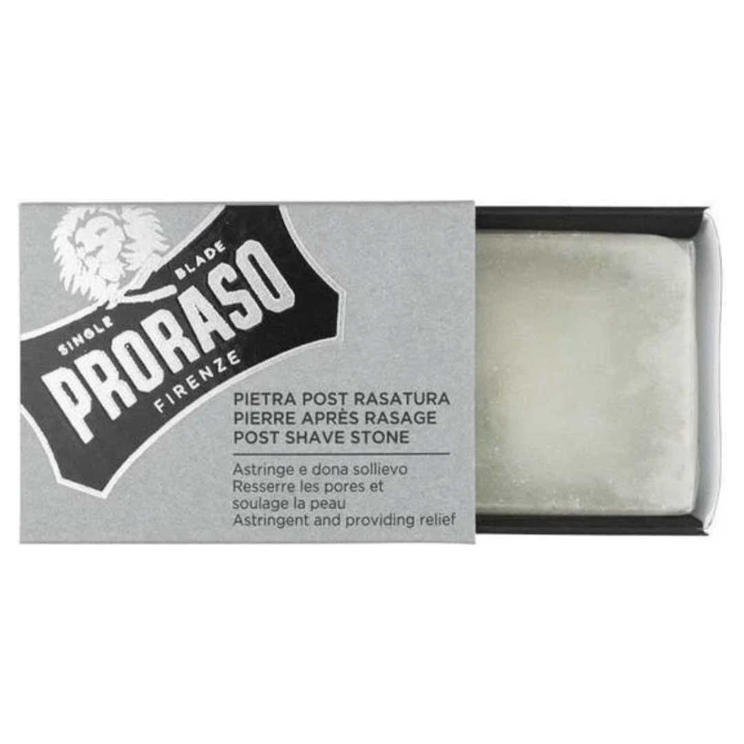 De Proraso Post Shave Stone Aluin Block kan na het scheren worden gebruikt om roodheid te verminderen en de huid te kalmeren. Aluinstenen staan bekend om hun verzachtende werking, wat ideaal is voor de gevoelige huid na het scheren. Proraso heeft meer dan 100 jaar ervaring in het ontwikkelen van verzorgende scheerproducten voor mannen en wordt ontwikkeld door en voor kappers.