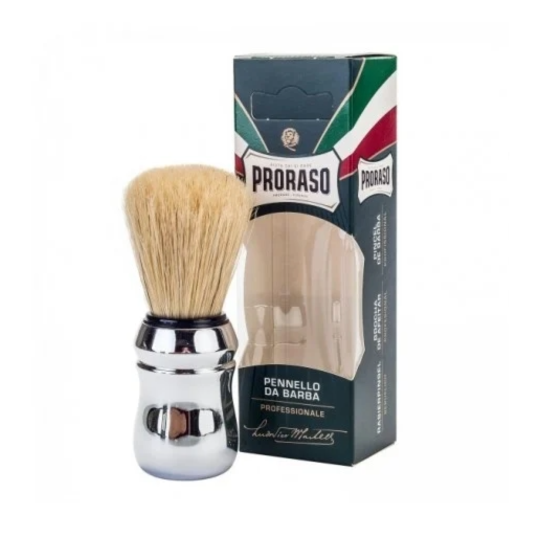 Authentieke Italiaanse scheerkwast met een stijlvolle chroomkleurige handgreep. Van het Italiaanse scheermerk Proraso.