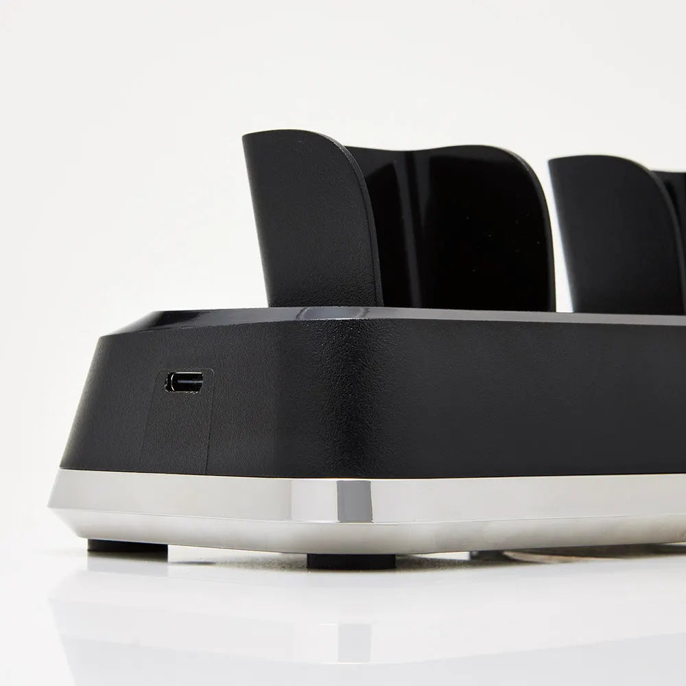 De Wahl Power Station is een multifunctioneel hulpmiddel. Het laadt moeiteloos drie draadloze 5V Wahl Professional haartrimmers, tondeuses of scheerapparaten op , zodat u flexibel kunt werken en nooit zonder stroom komt te zitten. Bovendien biedt de handige USB-C-poort direct opladen voor uw telefoon, tablet of mobiele betaalapparaat, zonder rommelige extra snoeren.
