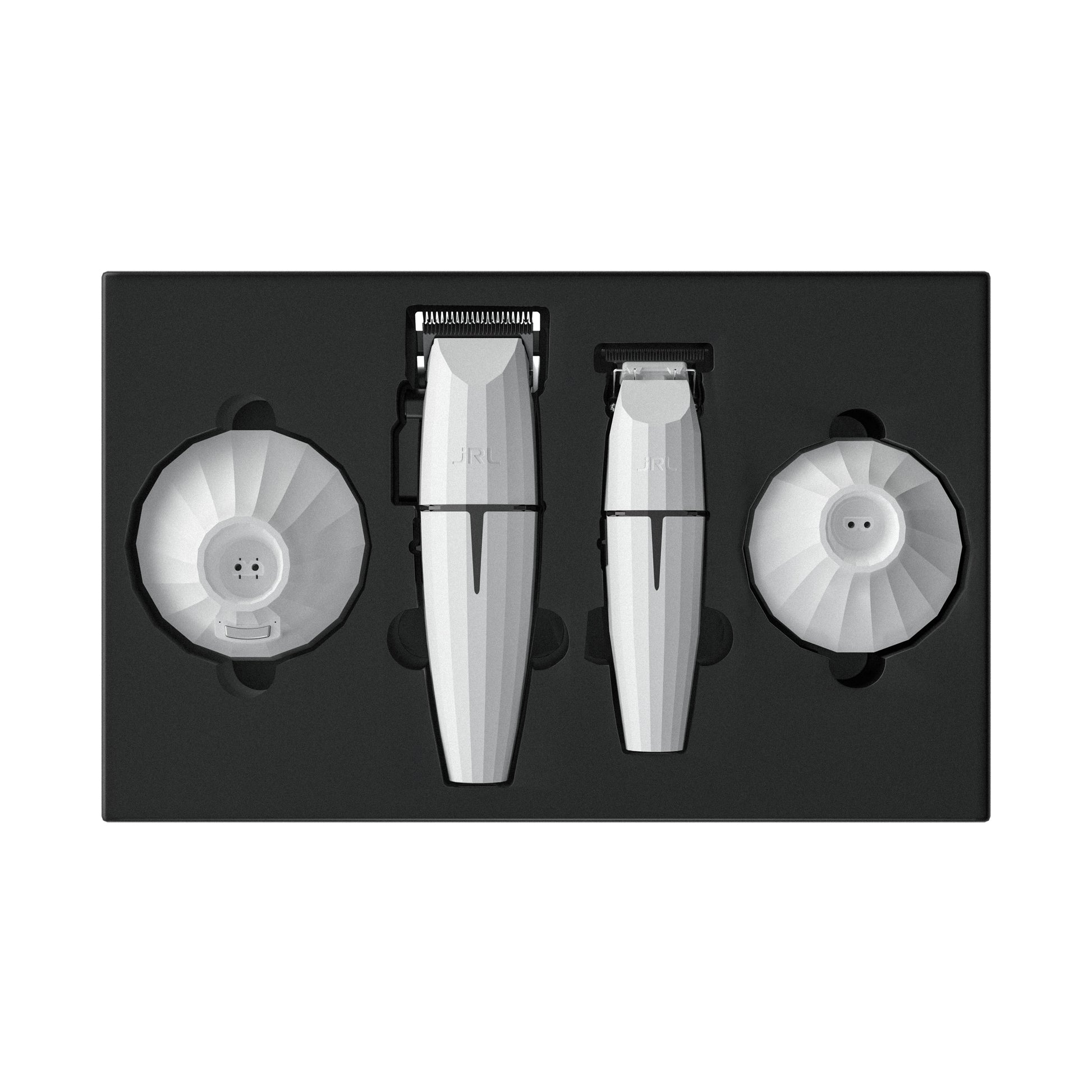 Met de JRL Limited Ghost Edition Combo Kit 2, bestaande uit de Fresh Fade 2020C-W Clipper en de Fresh Fade 2020T-W Trimmer in het wit, krijg je gereedschap dat uiterst efficiënt en gebruiksvriendelijk is en zorgt voor uitstekende prestaties!