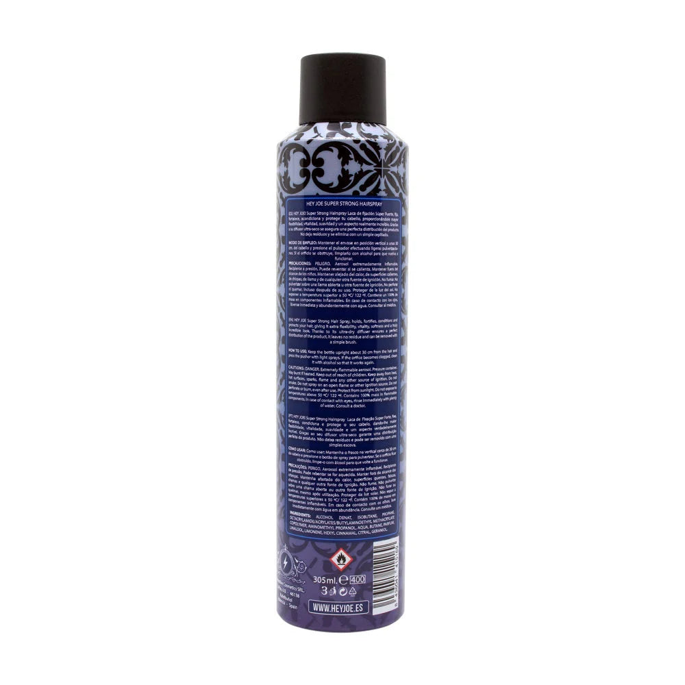 The new and original SUPER STRONG HAIRSPRAY hairspray from HEY JOE! ™ guarantees extreme hold and keeps the hairstyle firm for all hair types, all day long.