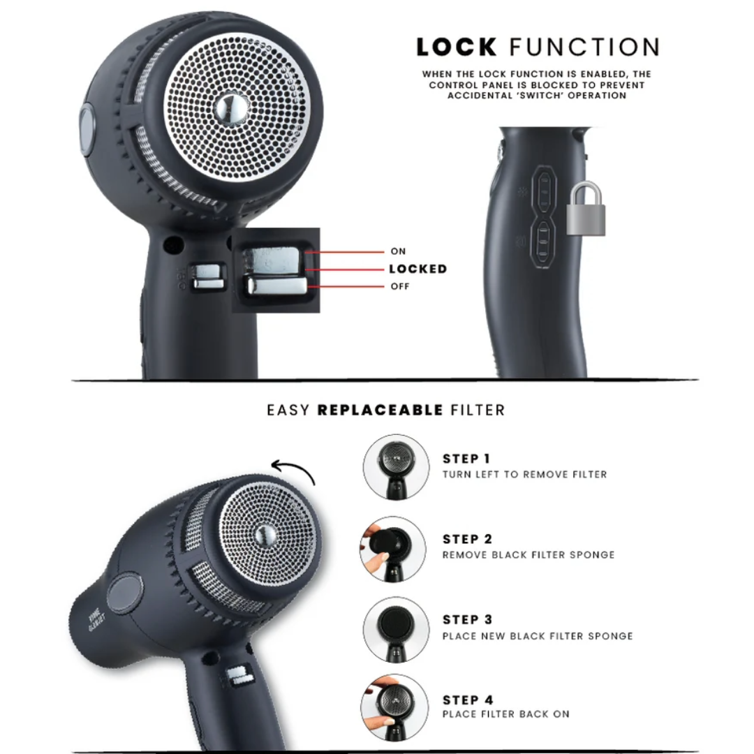 Engineered for long-lasting reliability, the Glamjet’s motor guarantees steady power, low noise, and reduced vibration, even after hours of use.