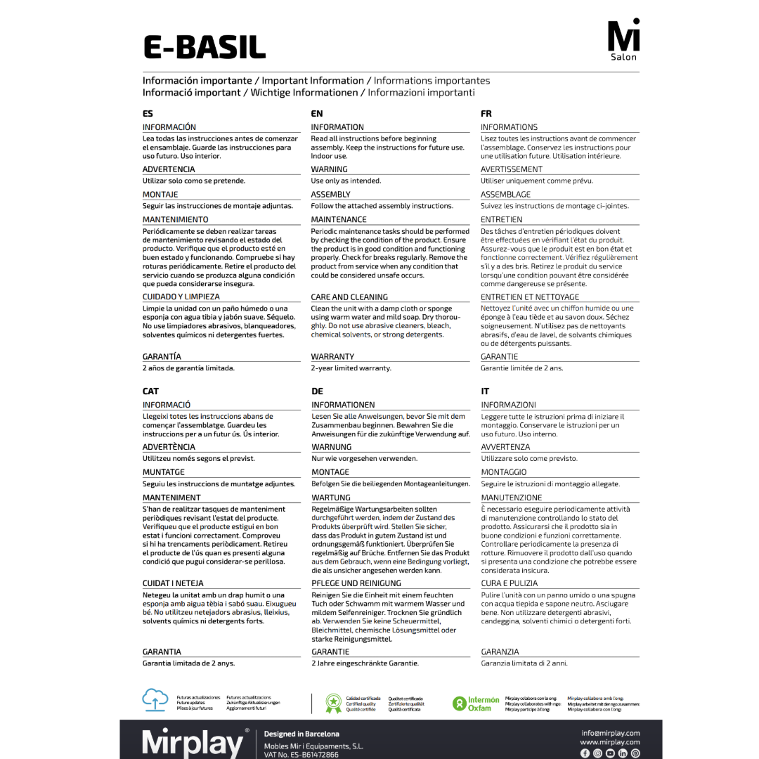 Mirplay ships directly from its factory in Spain. If in stock, delivery typically takes approximately 1 week, with a maximum delivery time of 2 weeks.